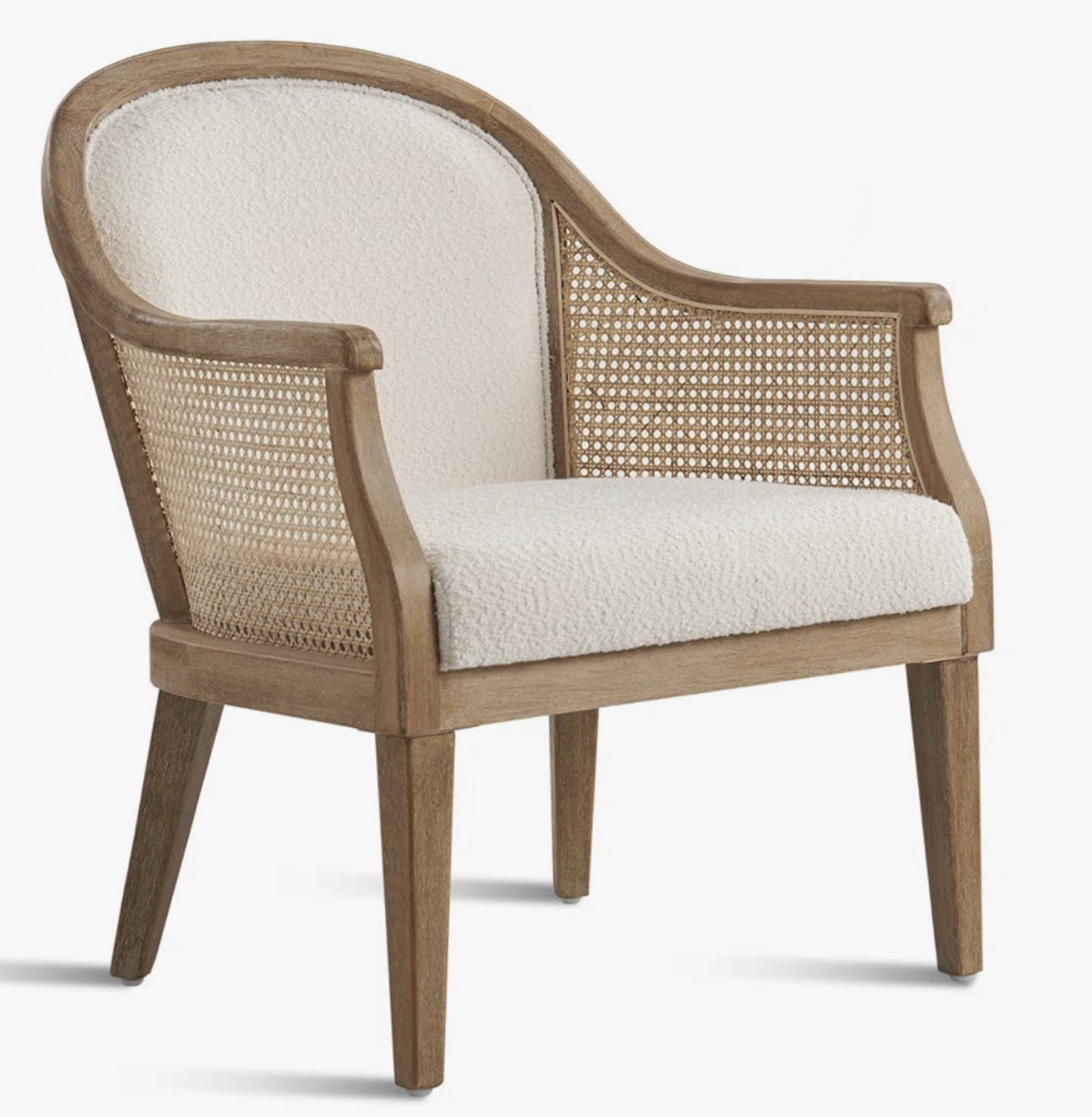 RATAN + IVORY BOUCLÉ CHAIR